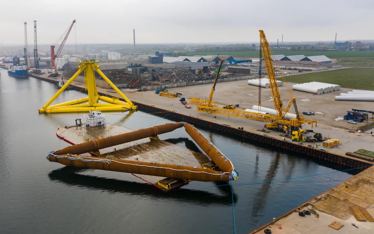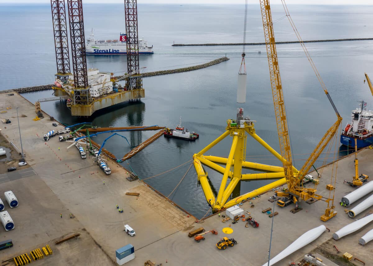 A 3.6 MW wind turbine from Siemens Gamesa Renewable Energy was mounted on the foundation following launch in the harbor basin.